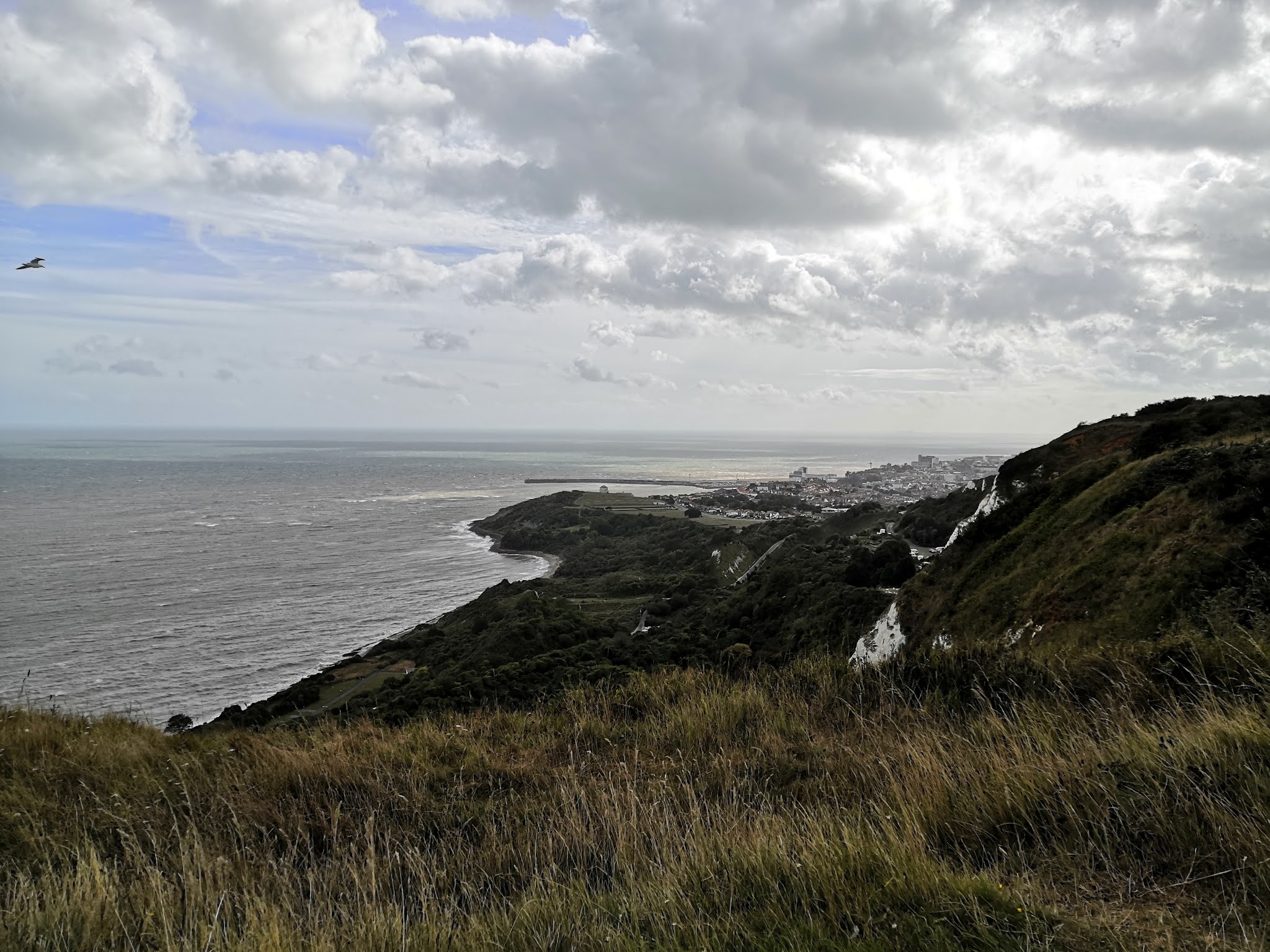 A stormy view of Folkestone from the Battle of Britain Memorial.